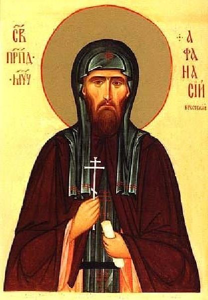 Святий Афанасій, за особливим благословенням Божої Матері, самовіддано відстоював Православ'я в межах земель, захоплених Річчю Посполитою. З 1638 по 1648 р. святий Афанасій виконував послух ігумена Брестського Симеонівського монастиря. Преподобний зазнав багато образ від уніатів та незаконних покарань від влади, тричі зазнав тюремного ув'язнення. Святий був направлений владою до Києва, щоб постати перед духовним судом, але був виправданий, знову повернувся до своєї обителі.