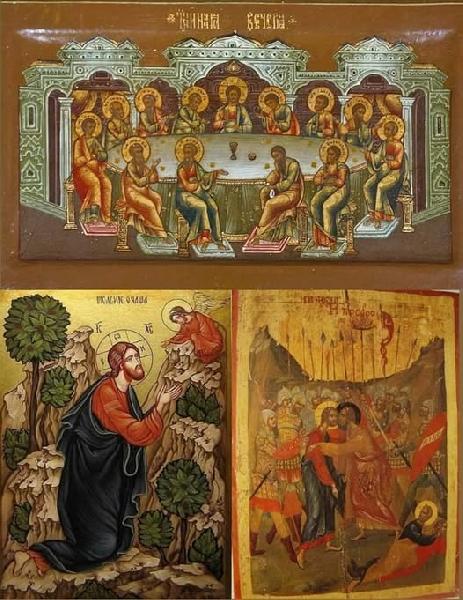 Первое - это Тайная вечеря, на которой Господь установил новозаветное таинство Святого Причащения - Евхаристии. В переводе с греческого «евхаристия» означает благодарение. Это преосуществление хлеба и вина в Тело и Кровь Христову и принятие верующим этого дара. В этом таинстве происходит самое полное, насколько только это возможно на земле, соединение человека с Богом.