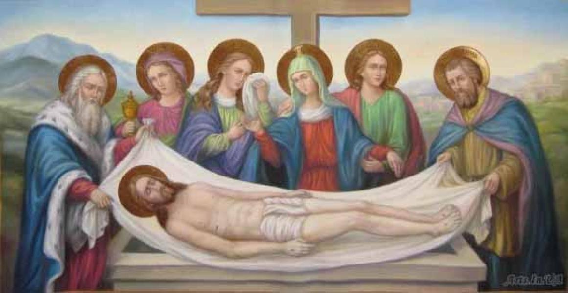 Тіло Господа було поховано в печері, вхід до якої, за наполяганням юдейських священиків, був запечатаний, а біля нього виставлено римську варту.