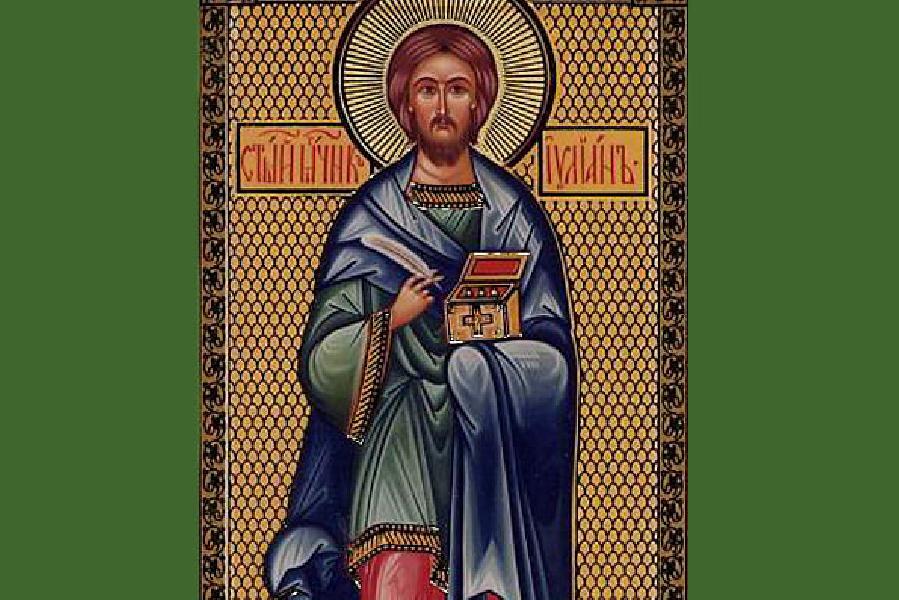 Священномученик Іуліан Галатійський, пресвітер, і з ним 40 мучеників. Ці святі мученики на початку IV століття ховалися від антихристиянських гонінь у печері в Галатійській області. На них донесли, але для того, щоб урятувати своїх чад, отець Іуліан добровільно здався мучителям. Священика катували вогнем, але після хресного знамення, здійсненого мучеником, Господь охолодив полум'я. Звернувшись до Бога зі словами: «Господи, прийми дух мій з миром!», священномученик Іуліан схилив свою голову під меч. Після цього з Небес пролунав Голос, який покликав мученика до Царства Божого. Дізнавшись про страту свого духовного наставника, 40 його учнів також добровільно здалися і, подібно до святого Іуліана, прийняли мученицькі вінці.