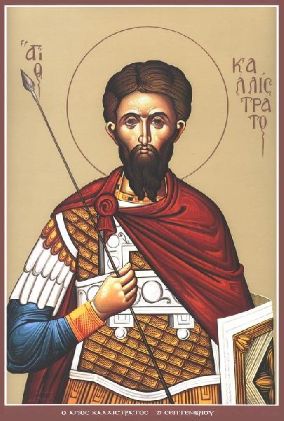 Мученик Калістрат та дружина його: мученики Гімнасій та інші. Святі страждальці за Христа та Його Церкву, які прийняли мученицькі вінці за тверде сповідання християнської віри у IV столітті. Сам Калістрат був родом з Карфагена, його дід став свідком Хресної смерті Христа та Його Воскресіння, а тому рід святого був вірним Спасителеві. Тим часом майбутній мученик став воїном і вірно служив Римській імперії, поки воєначальник не дізнався, що Калістрат сповідує християнство.