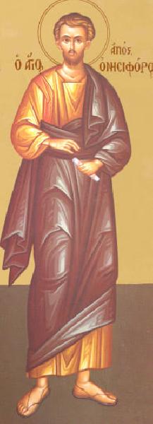 Святитель Онисифор, також апостол від 70-ти, був єпископом спочатку у Колофоні, а потім – у Коринфі. Про нього є слова в посланні першоверховного апостола Павла до Тимофія: "Хай дасть Господь милість дому Онисифора за те, що він багато разів покоїв мене і не соромився уз моїх, але, бувши в Римі, з великою ретельністю шукав мене і знайшов. Хай дасть йому Господь мати милість у Господа того дня, а скільки він служив мені в Ефесі, ти краще знаєш» (2 Тим. 1, 16-18). Після 67 року від Різдва Христового святий Онисифор також прийняв мученицький вінець.