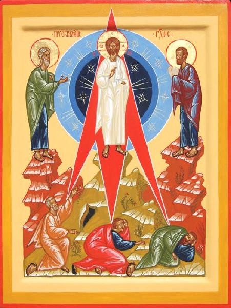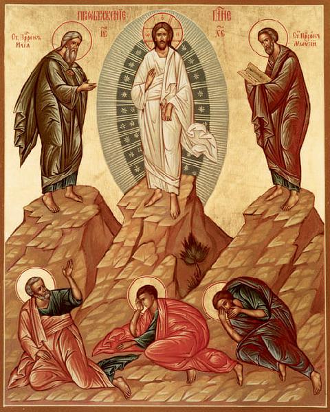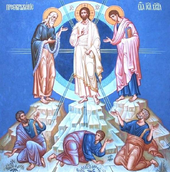 Итак, по наступлении восьмого дня, Господь, взявши Петра, Иакова и Иоанна, взошел на гору помолиться: ибо Он всегда или один молился, удаляясь от всех, даже от самих апостолов, как, например, в то время, когда насытил пятью хлебами и двумя рыбами пять тысяч человек, кроме женщин и детей (Мф. 14, 19-23), или, взявши с Собою немногих, которые превосходили прочих, как было при приближении спасительной страсти, когда, сказав прочим ученикам: "седите ту дондеже шед помолюся тамо" (Мф. 26, 36), - взял с Собою Петра, Иакова и Иоанна. Вот и теперь, взявши только этих же, Господь возвел их на высокую гору одних и преобразился пред ними, то есть, в глазах их. "Что значит - преобразился?", - вопрошает Златословесный Богослов (Златоуст) и отвечает: "открыл, то есть, им нечто из Своего Божества - столько, сколько они могли вместить, и показал в Себе обитающего Бога".