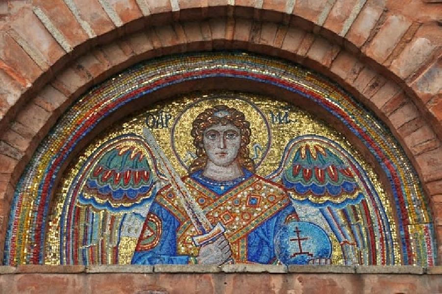 Святой Архангел Михаил явил свою силу, когда он чудесно спас отрока, брошенного грабителями в море с камнем на шее у берегов Афона (Афонский Патерик).