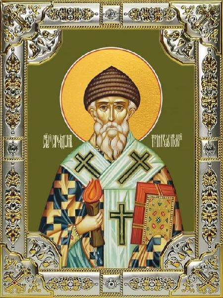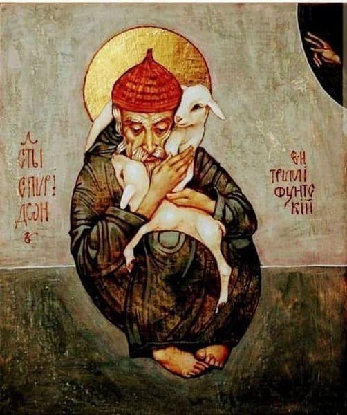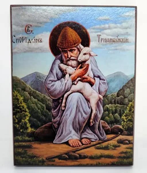 Святитель Спиридон Тримифийский родился на Кипре в III веке. На иконах его легко узнать по традиционной шапке кипрских пастухов, сплетённой из ивовых веток. Дело в том, что до того, как святого Спиридона выбрали епископом, он был пастухом. И став епископом, святитель продолжал вести простую жизнь и пасти скот.