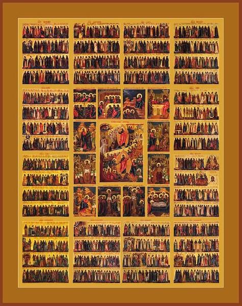 Совокупився собор святых Твоих, ради любве, и Тебе наслаждаяся истинно же и чисто, в радости лик неразрушаемыи со ангелы ликует, о Тебе Всеведце Бозе всех и Господе.