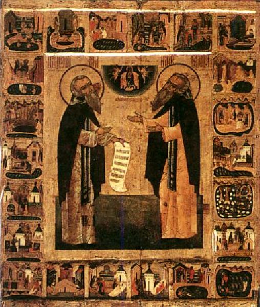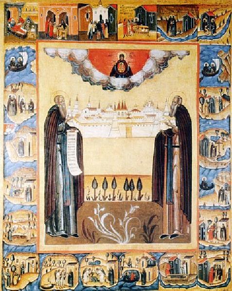 Преподобный Зосима, игумен Соловецкий, великий светильник Новгородского Севера, основатель иноческого общежития на Соловецком острове, родился в Новгородской епархии, в селе Толвуе близ Онежского озера. С юных лет он воспитывался в благочестии, и после смерти родителей Гавриила и Варвары раздал имущество и принял постриг.
